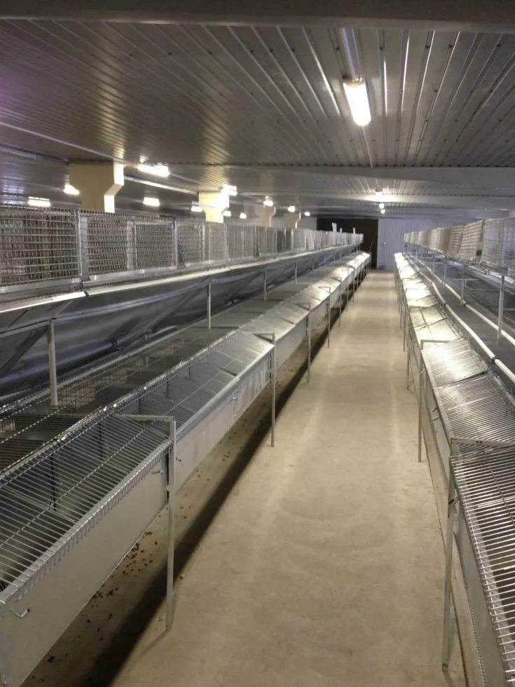- клітка для відгодівлі молодняка 300х2300х1300 мм, 12 осередків 300х375х650. Клітини розраховані на 72 голів кожна. Обладнані оцинкованими бункерними годівницями.