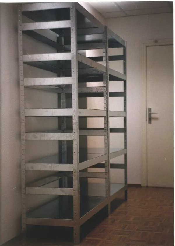 Стелажі для архіву виготовляються з оцинкованої сталі або холоднокатаної сталі з полімерним порошковим покриттям. Каркаси стелажів робимо зі сталі товщиною 0,8; 1,0; 1,2 і 1,5 мм. Полиці для стелажів виготовляються зі сталі товщиною 0,5; 0,63 і 0,8 мм або з ДСП шліфованого або ламінованого товщиною 16 мм. Також можливе виготовлення полиць зі скла. Виробляємо бюджетні варіанти стелажів для офісу.