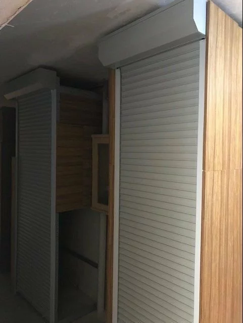 Дані стелажі робимо під замовлення, за індивідуальними проектами. Виїзд фахівця на заміри і погодження розбіжностей між вимогами замовника безкоштовний. Габаритні розміри стелажа можуть бути будь-якими, в залежності від місця розміщення. Стелаж встановлюється біля стіни. Бічна зашивання може бути металева або з ламінованого ДСП. Фасад закривається ролетою з замком або без замка.