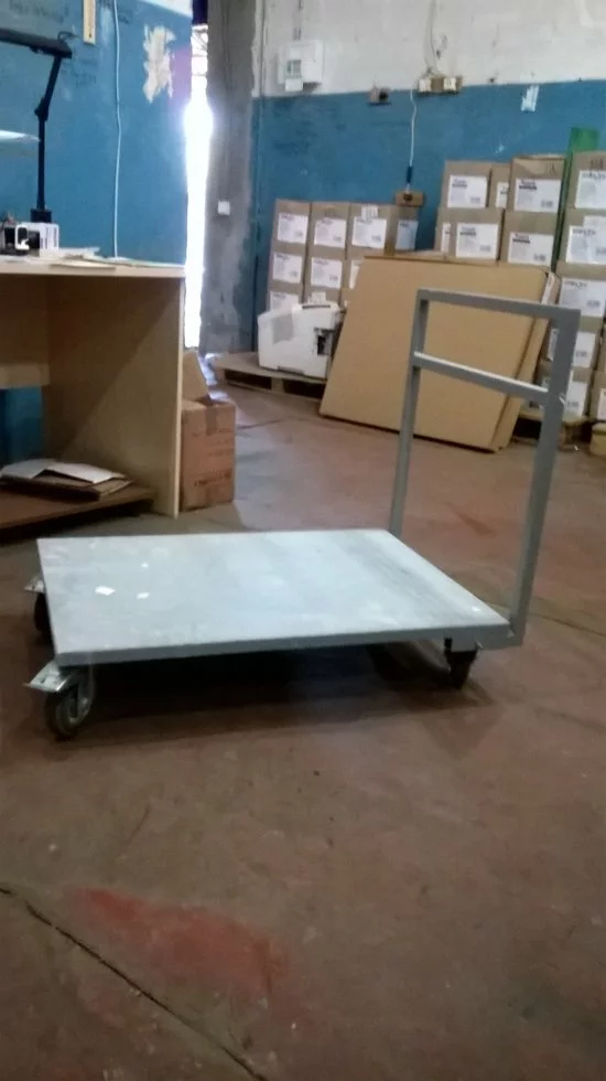 Пропонуємо складські візки. В даному випадку представлені візки, виготовлені з профільної труби 40х40х2 мм і листа товщиною 1,2 мм. Оснащені надійними поворотними опорними колесами з гальмом.